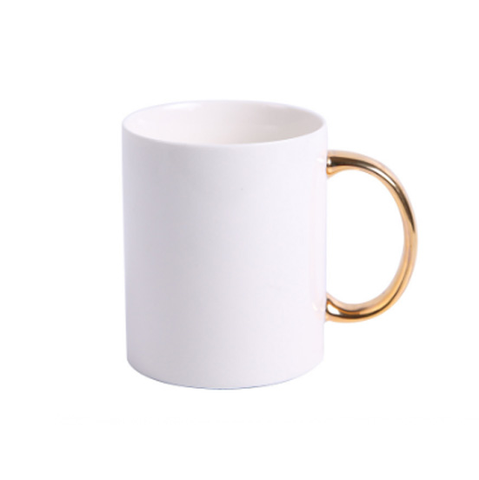 Caneca branca de subolmação com cabo de ouro de 11oz